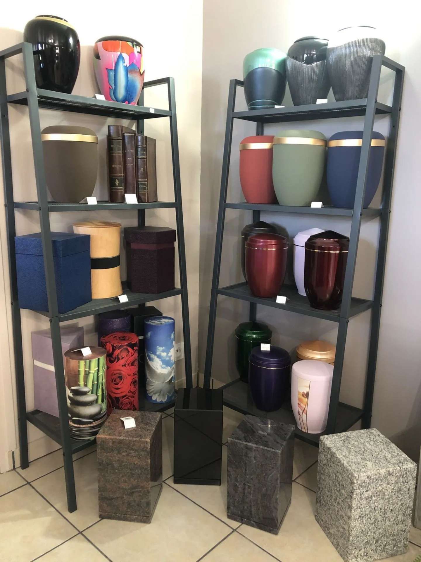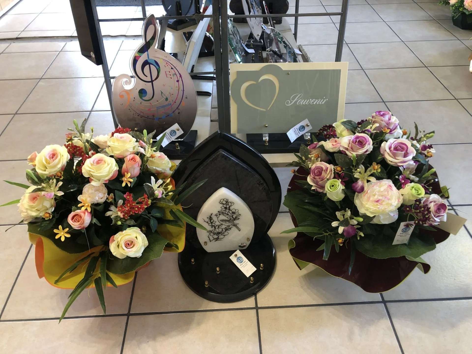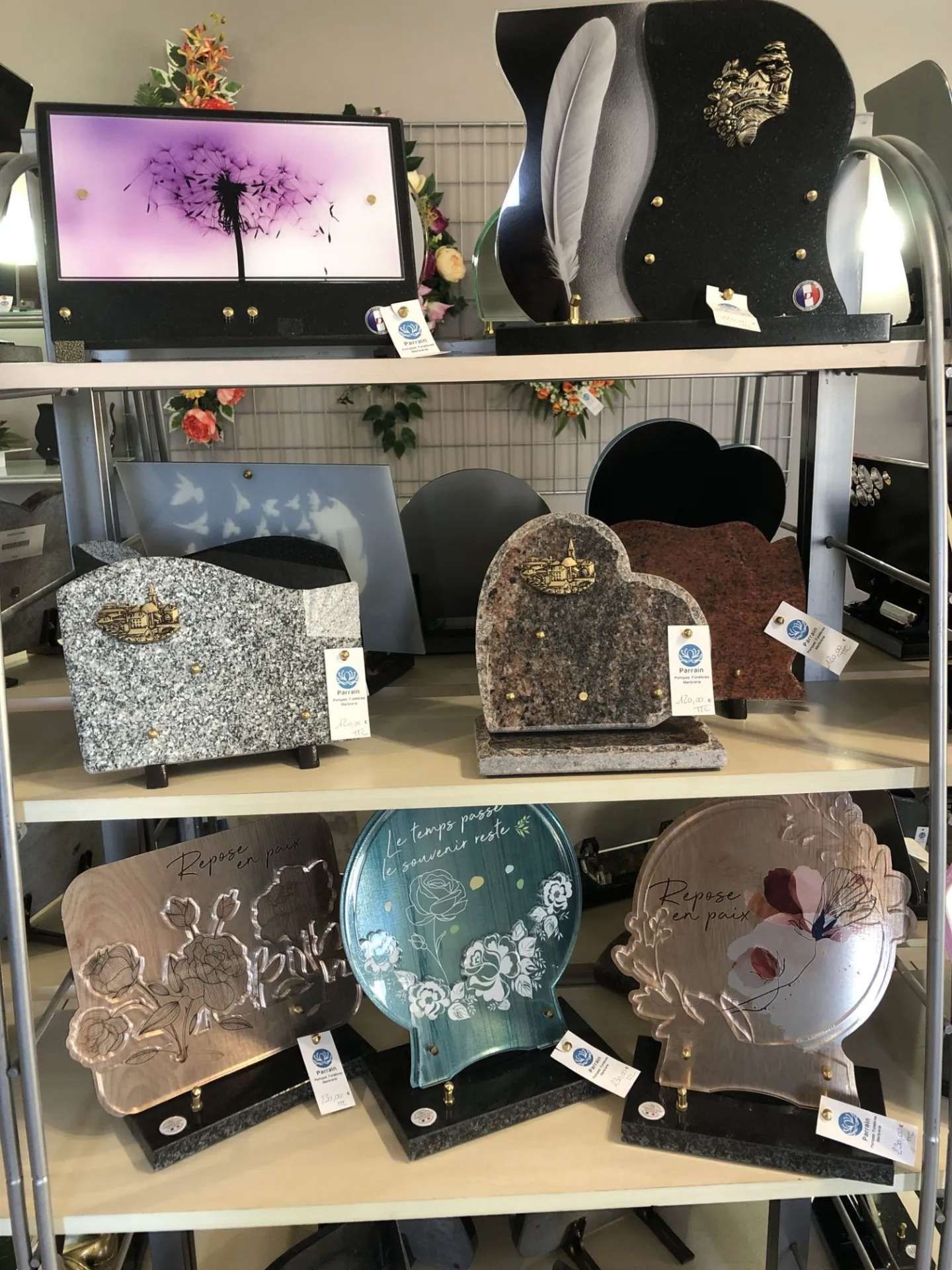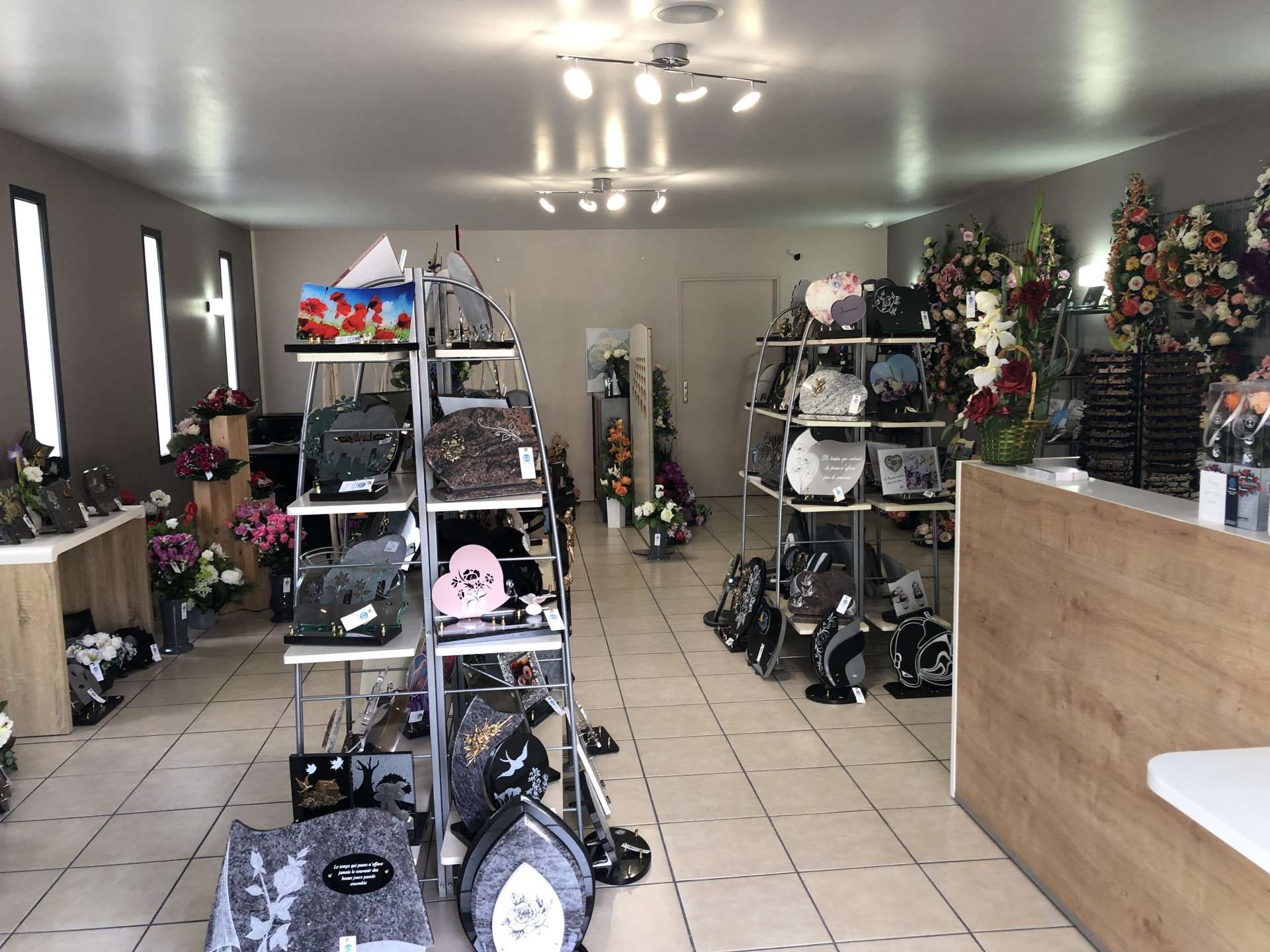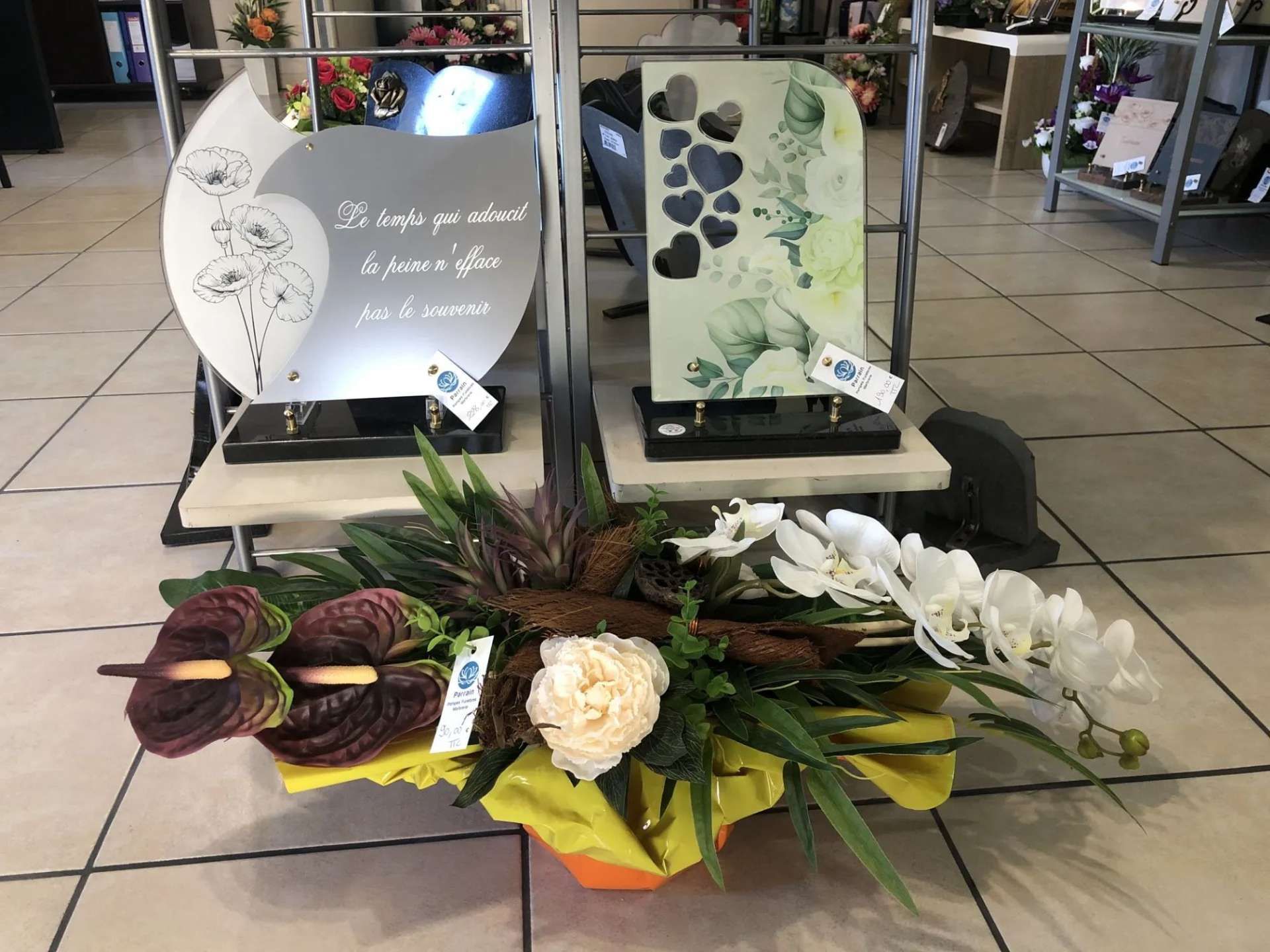 Nous vous proposons une sélection soignée de plaques funéraires déclinées en différents matériaux tels que le granit, la céramique ou le plexiglas, permettant de répondre à toutes les sensibilités et à tous les styles. Vous trouverez également des vases, des urnes cinéraires, des croix, ainsi que des fleurs artificielles conçues pour conserver durablement leur aspect et accompagner les sépultures avec élégance.
